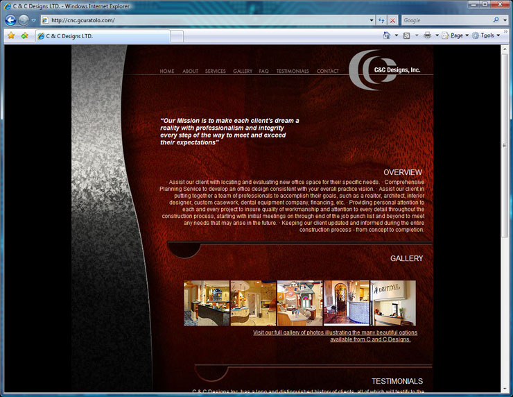 HTML web site for construction and interior design company. Featuring large gallery of retouched photography.