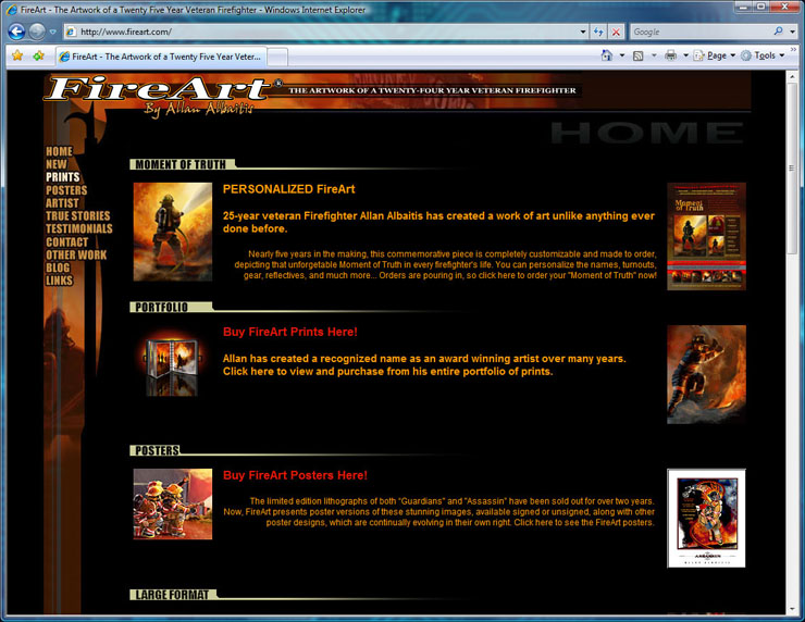Created e-commerce site for a firefighter/artist to sell prints of his paintings. Set up shopping cart, made all graphics, setup all HTML and CSS. New skin added in 2006. Over 12 million hits since inception in 2000.